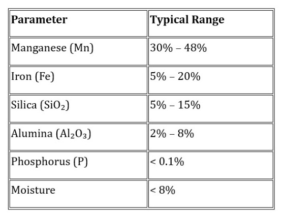Typical manganese ore supplied through our sourcing network may fall within the following indicative ranges: